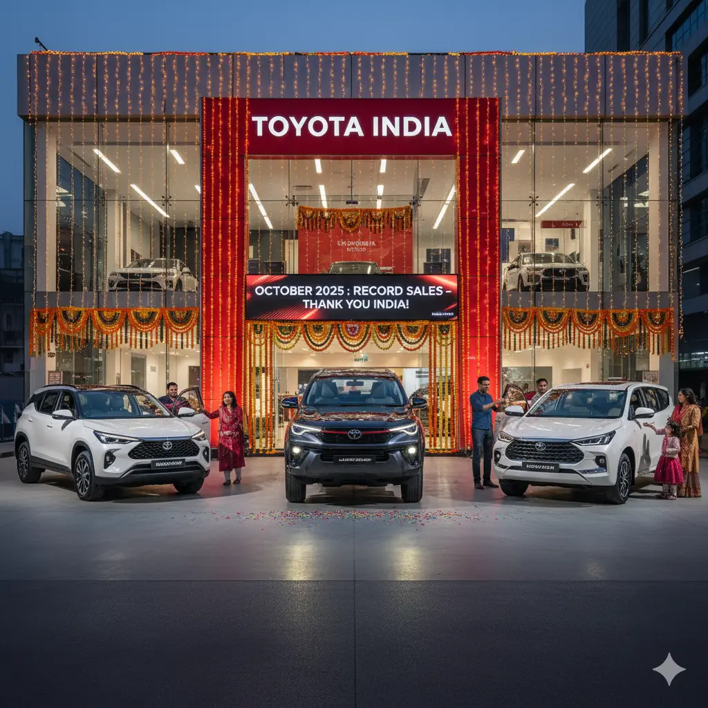 Toyota India defied market uncertainty and delivered a standout performance in October 2025, selling 40,257 vehicles domestically and 42,892 in total, marking a year-on-year increase of approximately 39%. @times.motormitra.in This surge was driven by strong festive-season demand, limited-edition models, and favourable tax reforms. @motor mitra